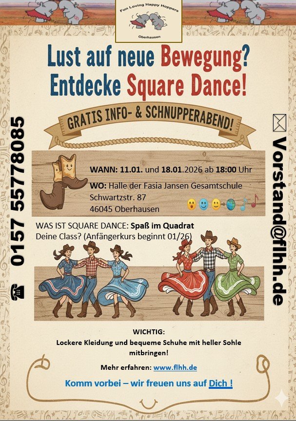 Willkommen im Forum des Square-Dance-Vereins "Fun Loving Happy Hoppers" in Oberhausen.